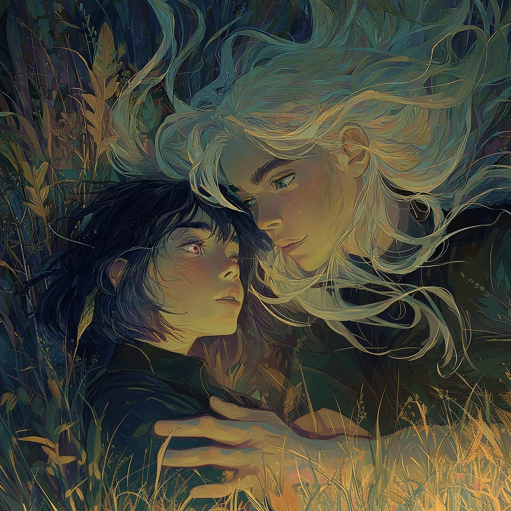 The vampire, though, didn’t notice her at all. He let out a sated sigh before sitting back on his heels and falling back to lie in the grass, dragging Dili, still trapped in his arm, down on top of him.